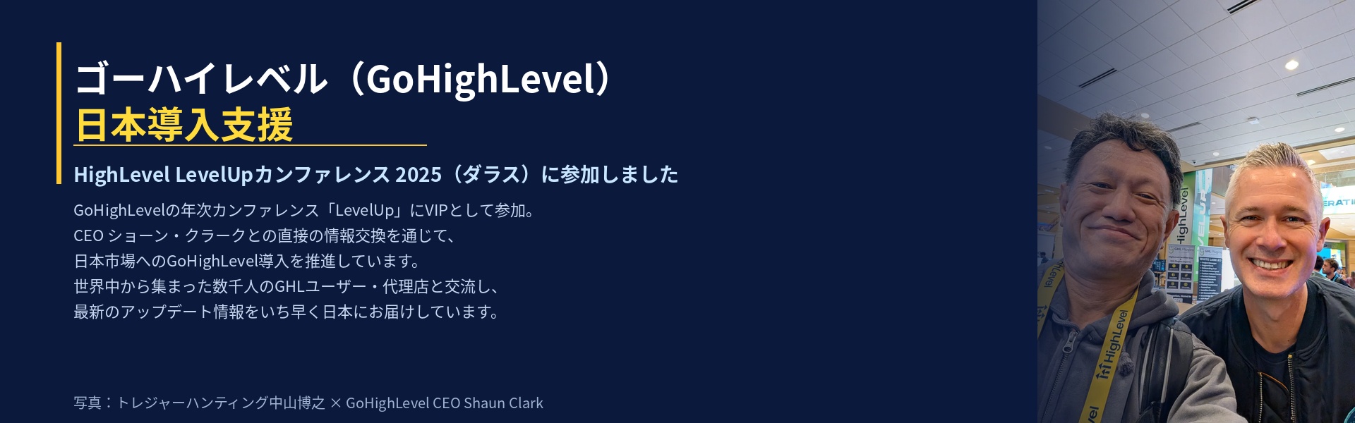 2025年10月、GoHighLevel公式カンファレンス「LevelUp 2025」(米国テキサス州ダラス、会場:ヒルトン・アナトール)に日本から参加。